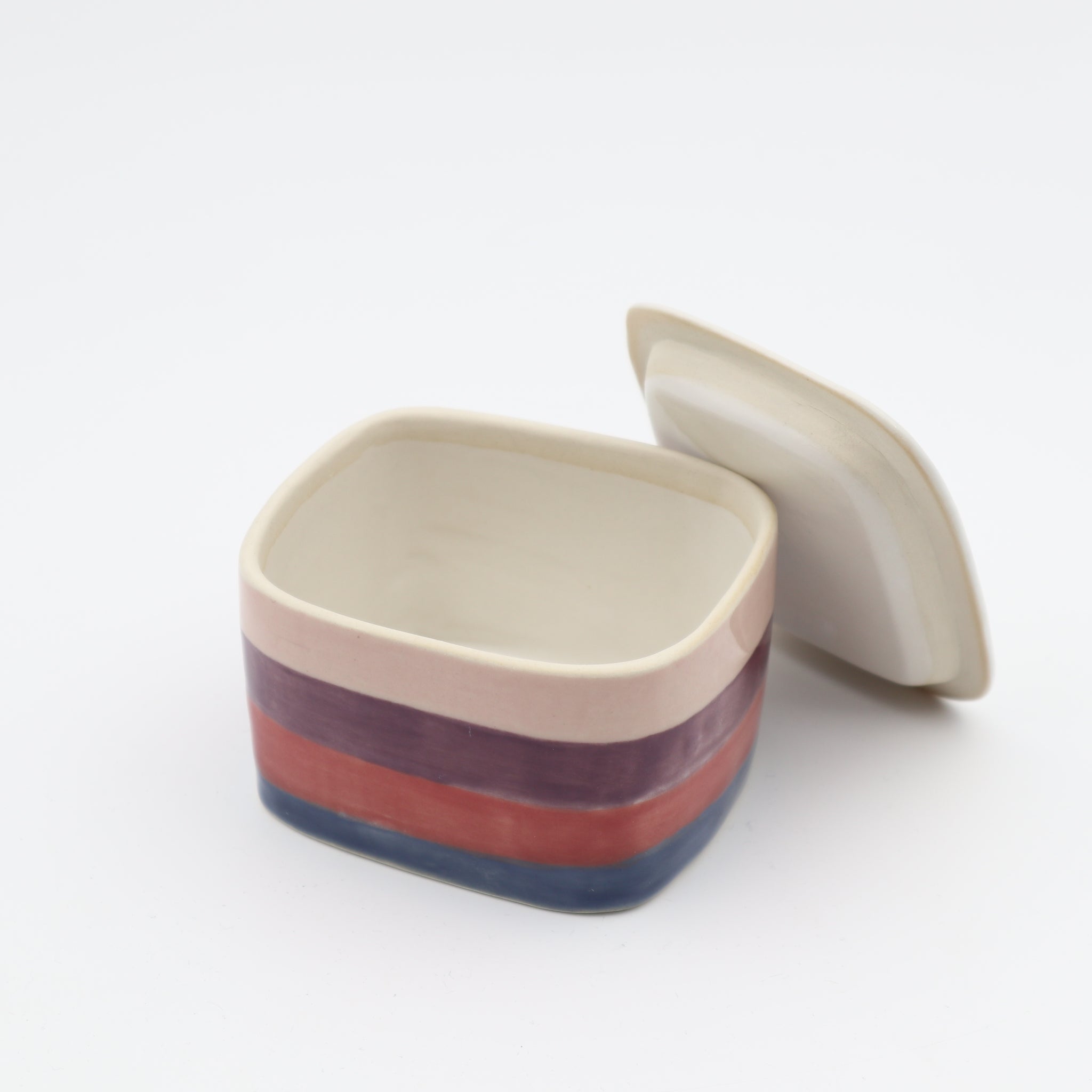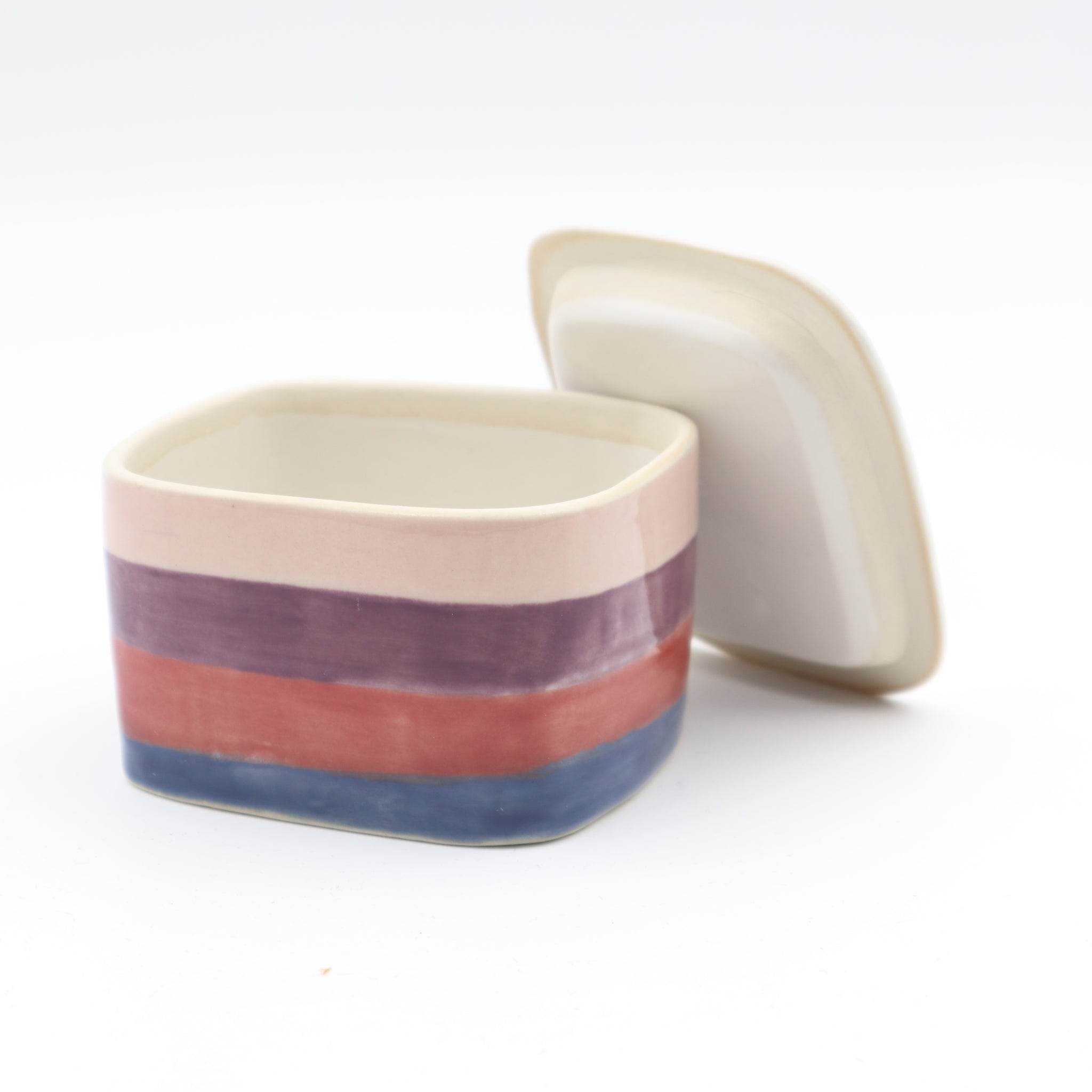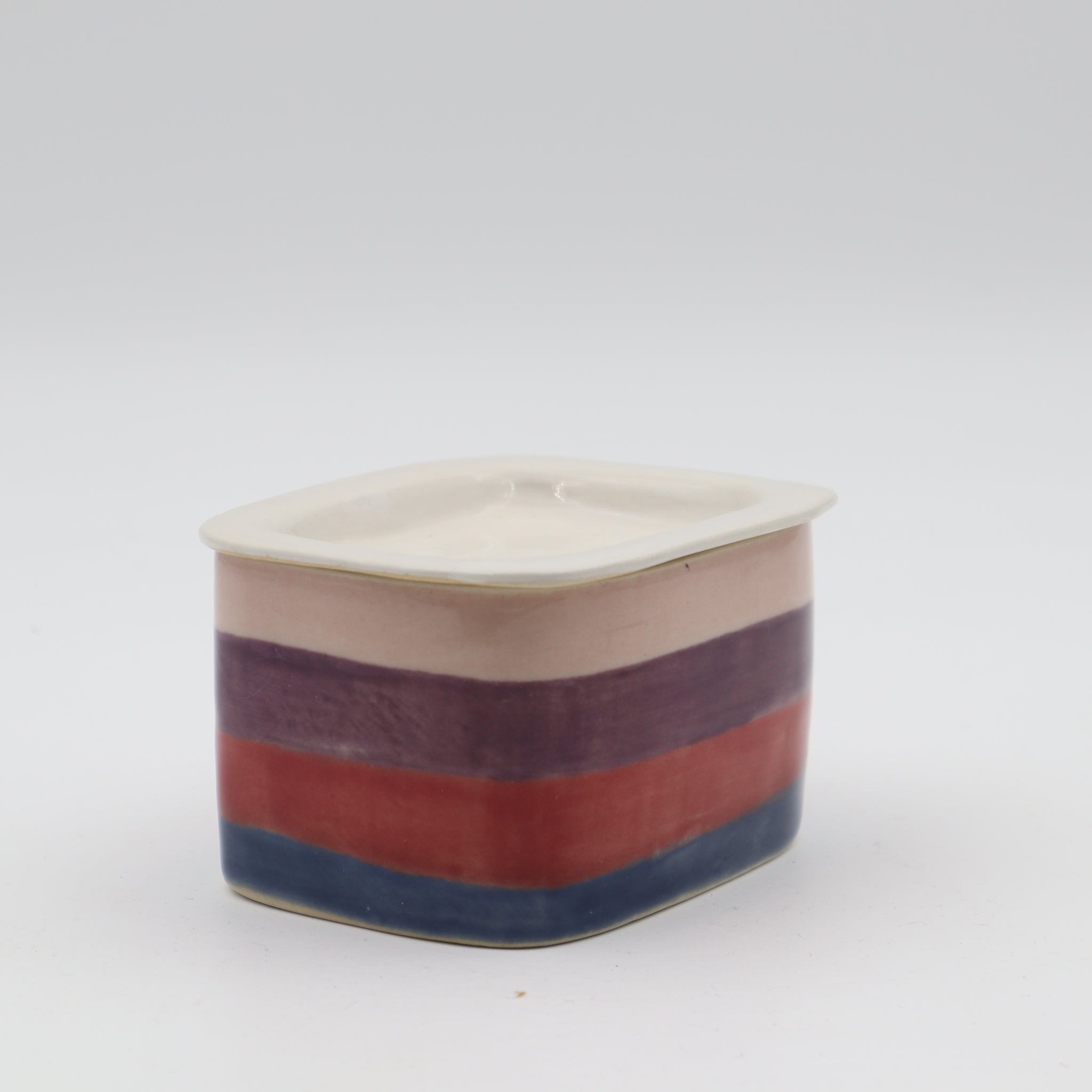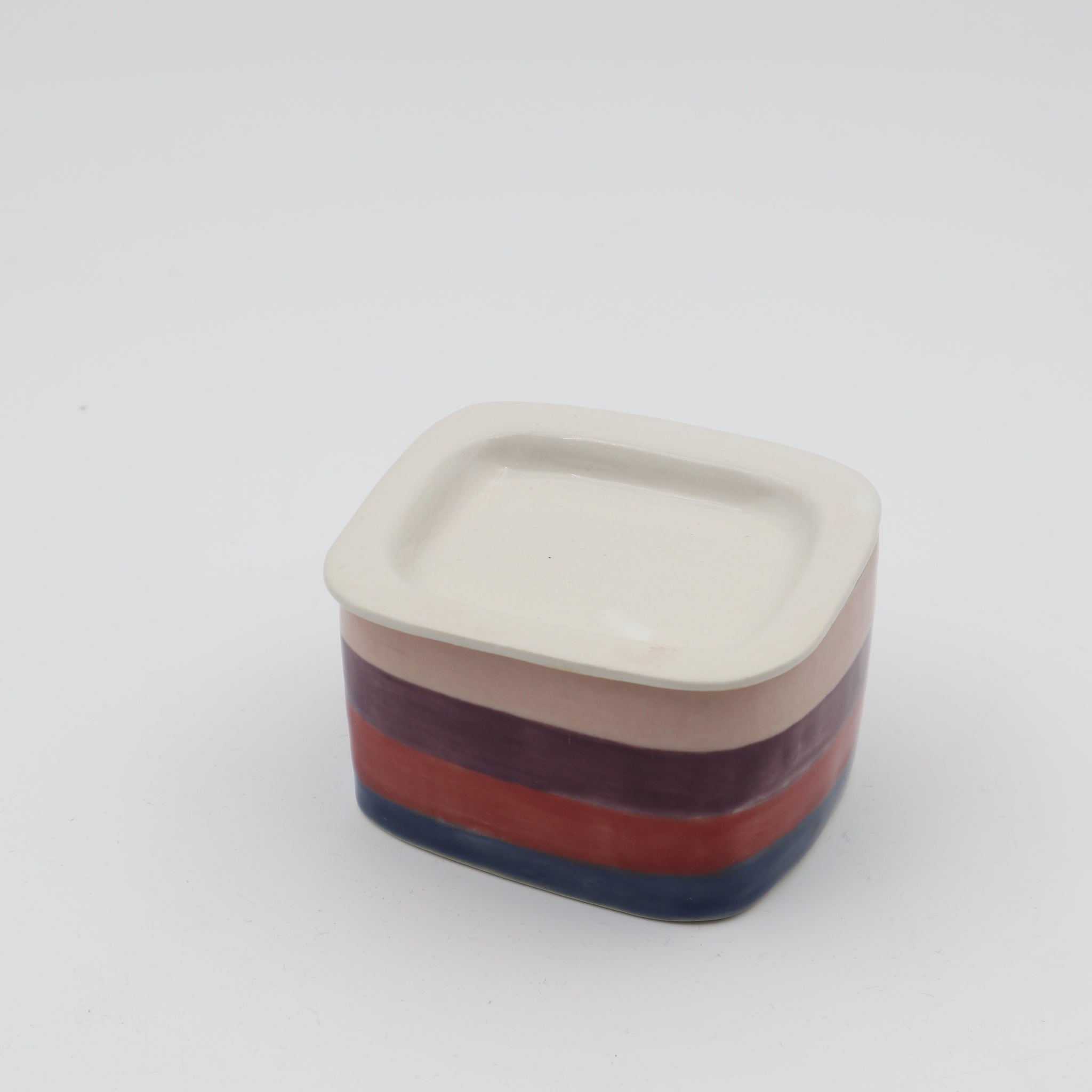 Smaller container with a lid. Handbuild and glazed. 9 x 8 x 6 cm