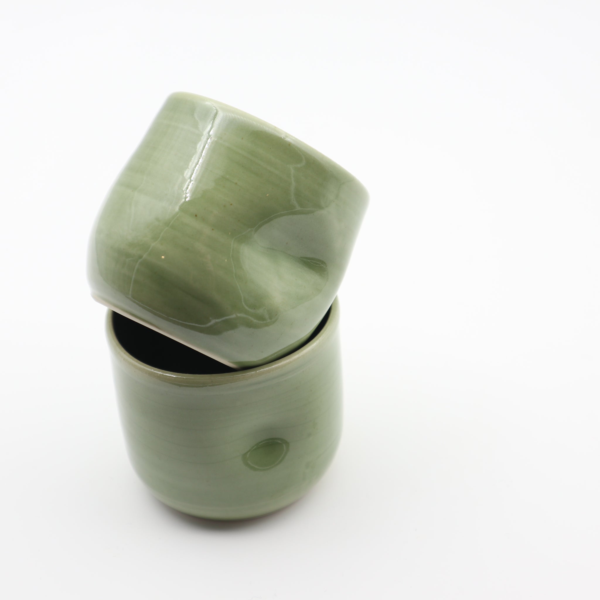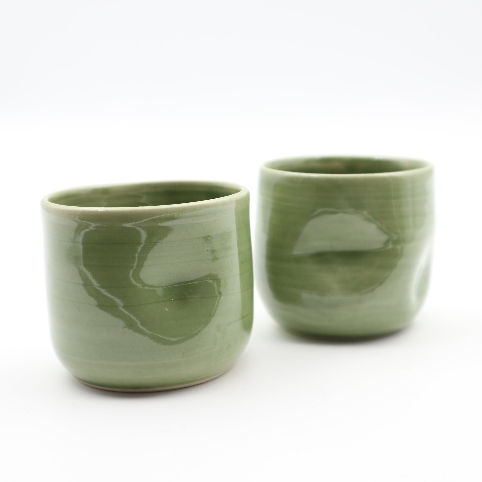 The perfect tumler for your whisky. Two small tublers handthrown and glazed stoneware. 7 cm high, diameter 7 cm. Contains app. 150 ml