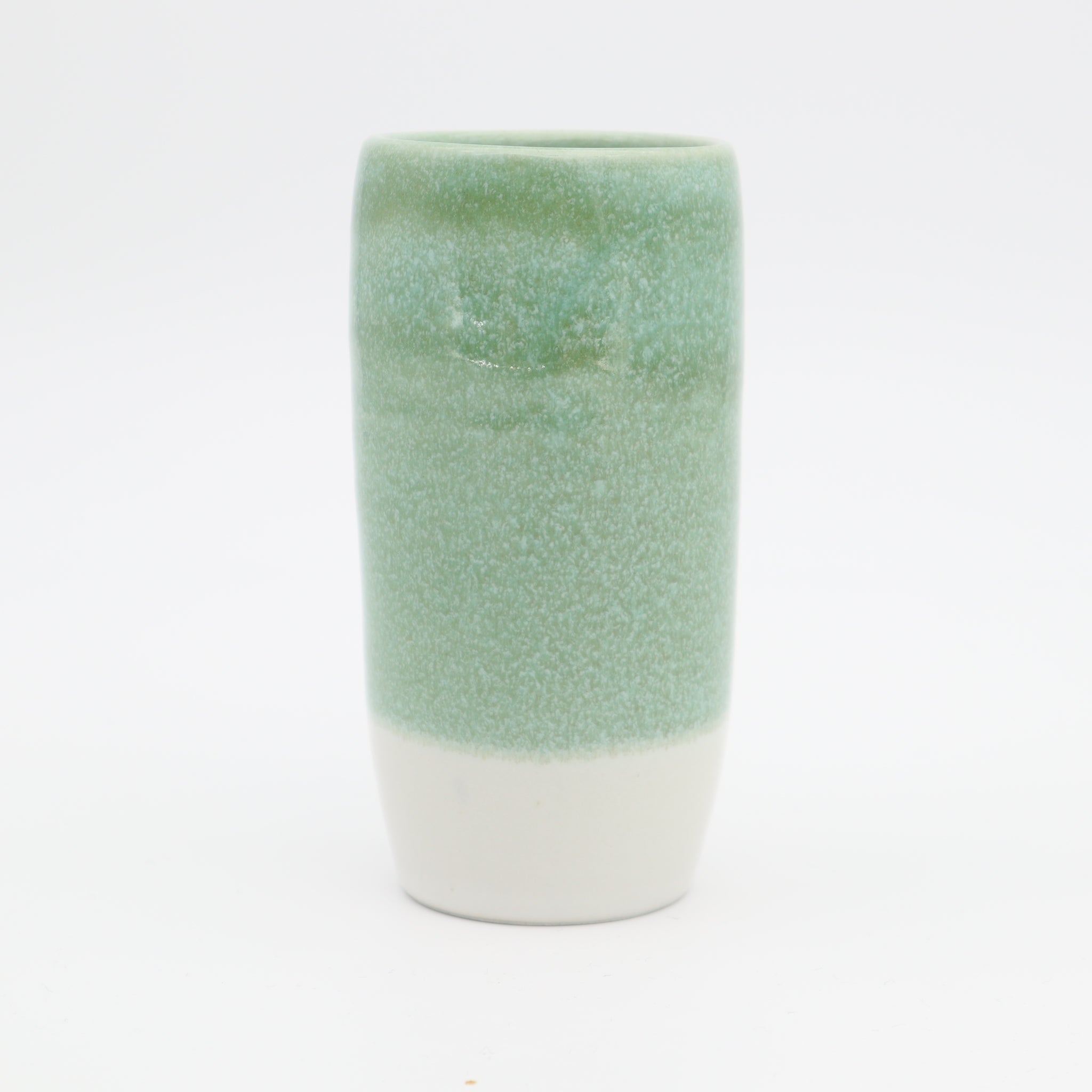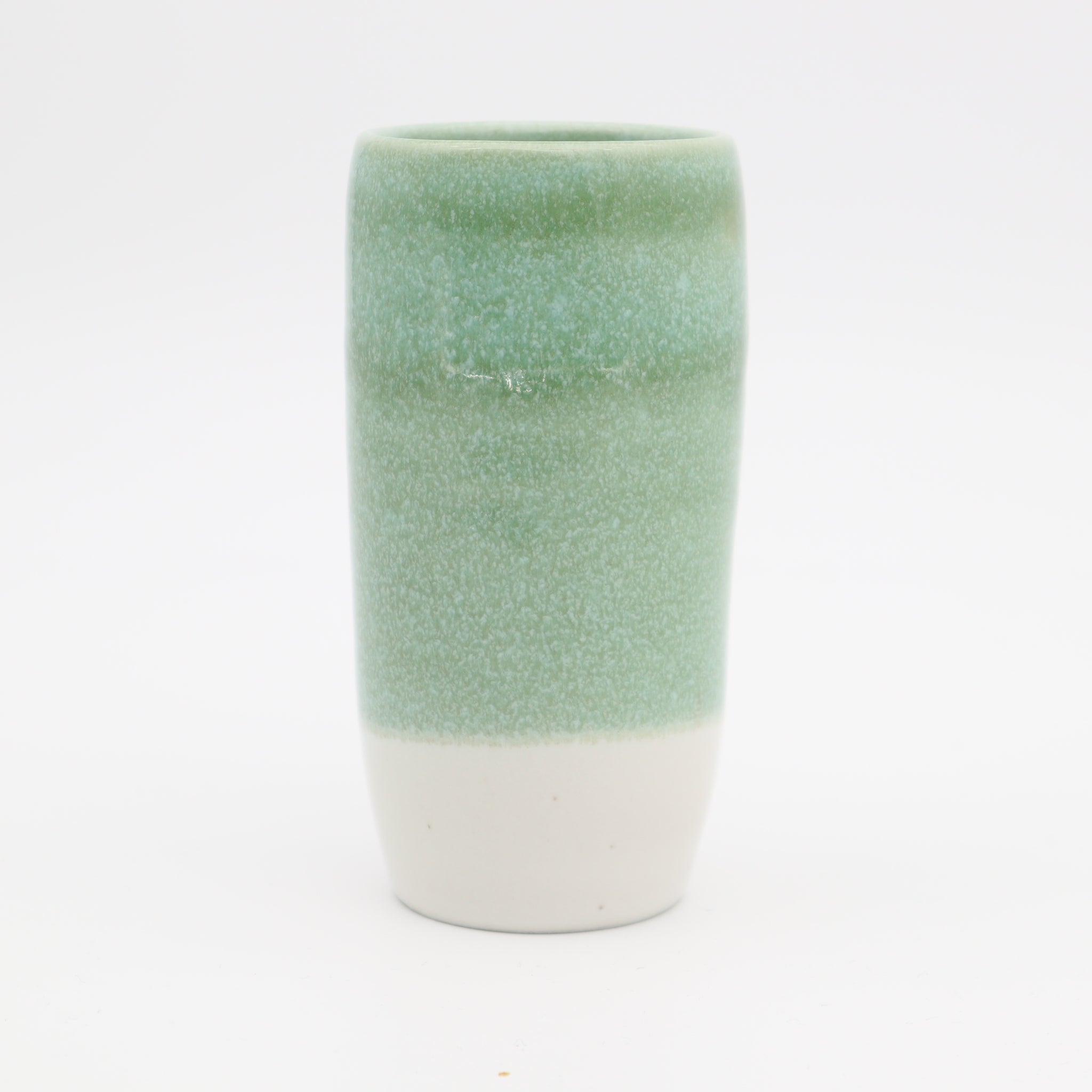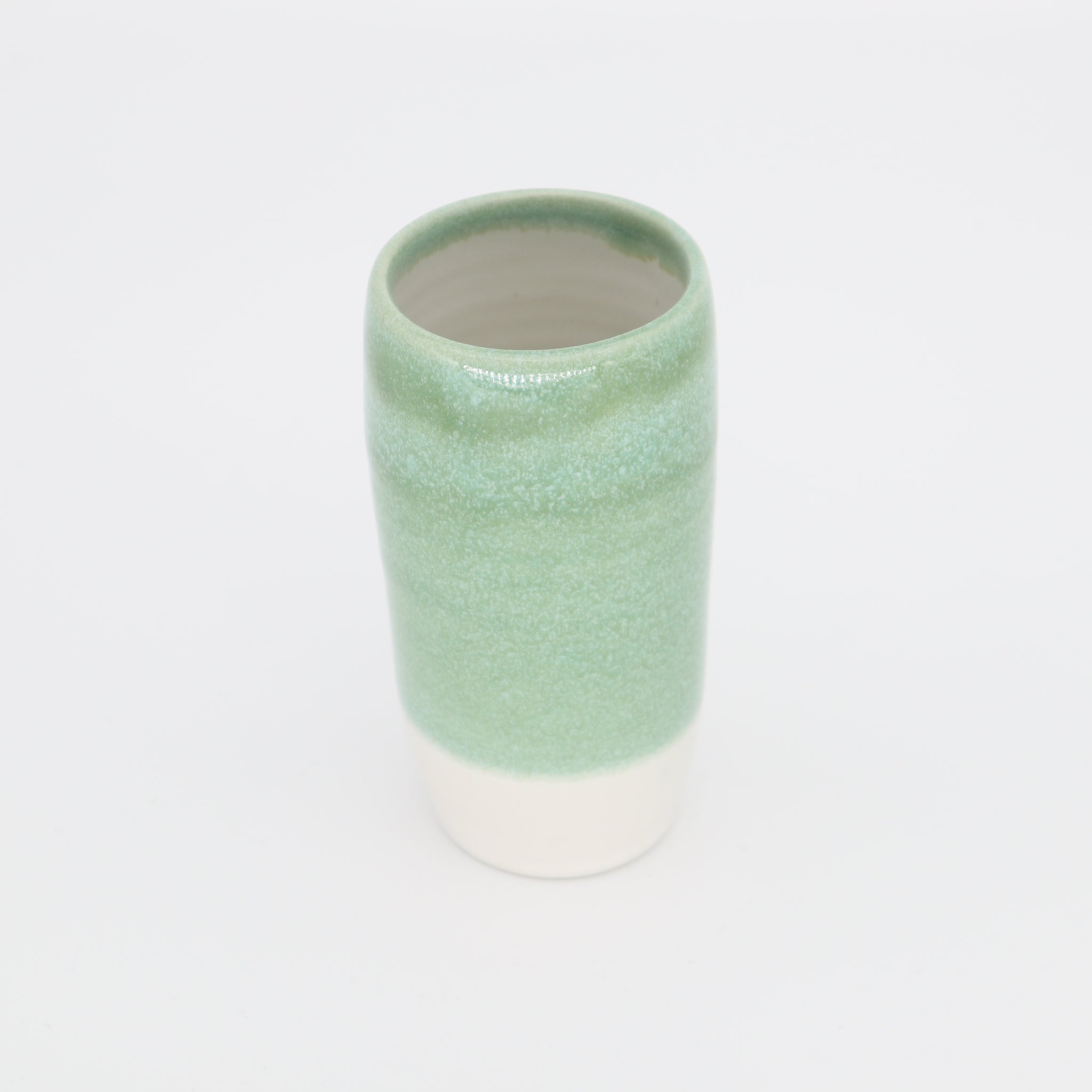 Cylinder shaped vase in different colors. Hand thrown and glazed white stoneware. Approx. 12 cm high.